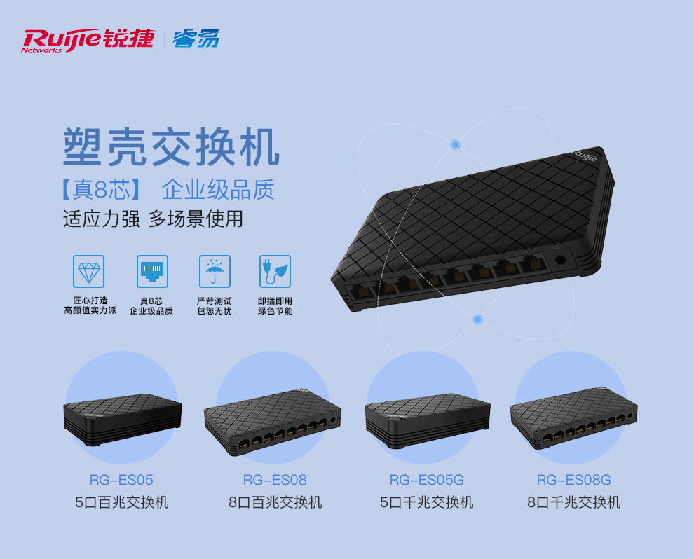锐捷(Ruijie)RG-ES08G8口千兆非网管桌面型交换机 自营
