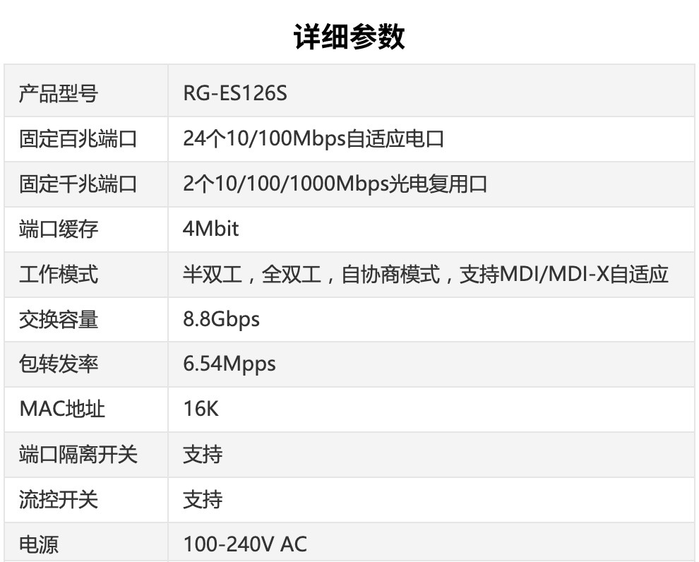 锐捷(Ruijie)RG-ES126S非网管千兆光口24口百兆交换机黑色 自营