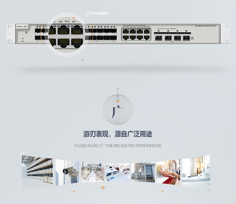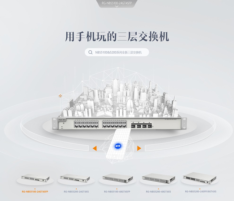锐捷(Ruijie)三层网管24口千兆交换机RG-NBS5200-24GT4XS4个万兆光口灰色 自营