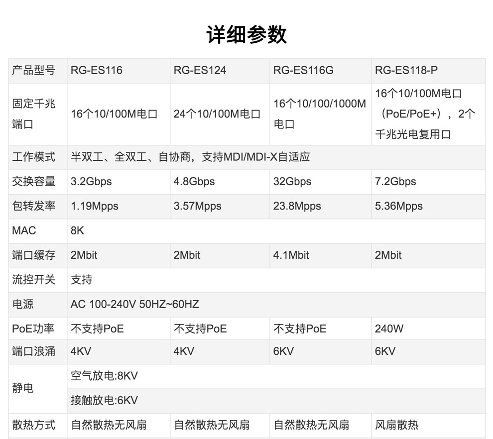 锐捷(Ruijie)RG-ES12424口百兆交换机黑色 自营