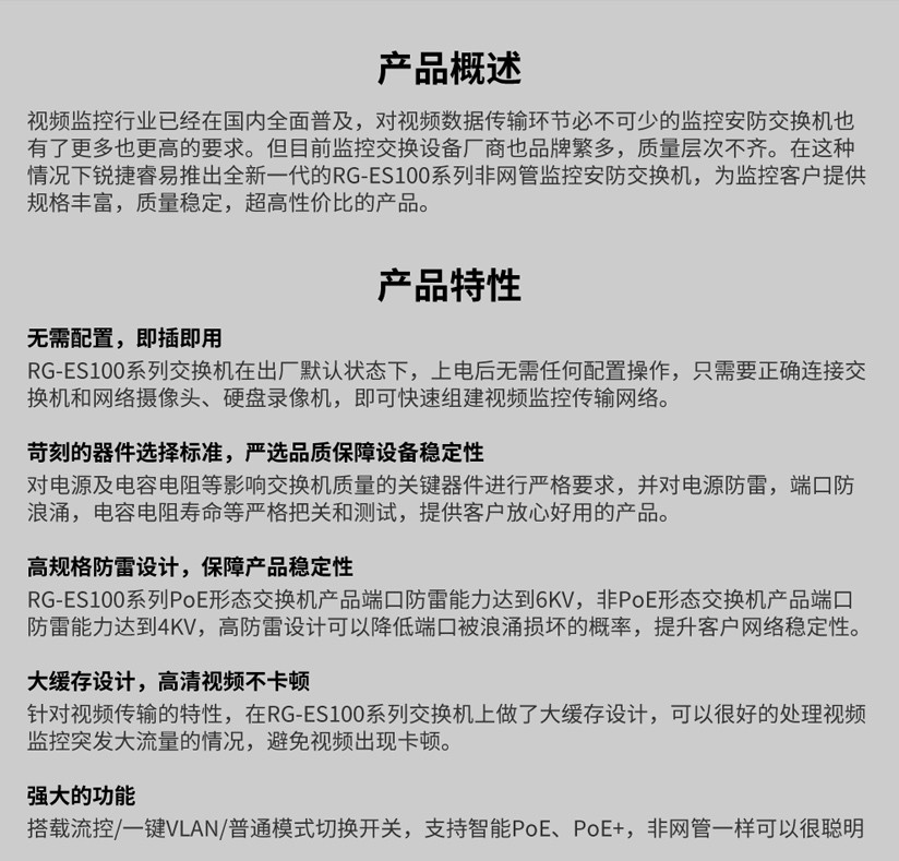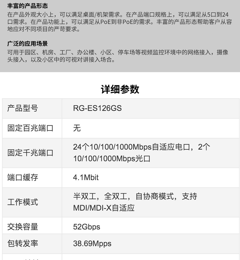 锐捷(Ruijie)24口千兆非网管交换机RG-ES126GS企业级安防监控交换黑色 自营