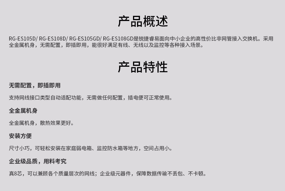 锐捷(Ruijie)RG-ES108GD8口千兆交换机 自营