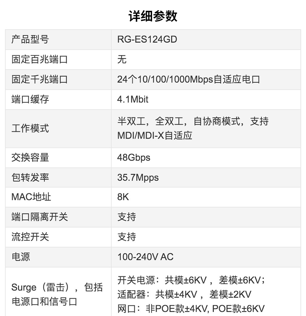 锐捷(Ruijie)RG-ES124GD24口千兆非网管型交换机 自营