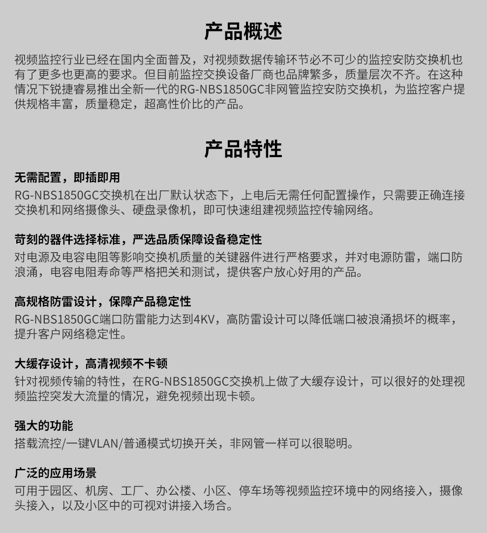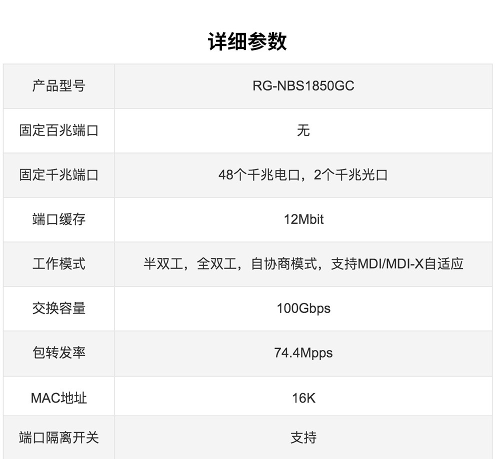 锐捷(Ruijie)RG-NBS1850GC48口机架式非网管千兆交换机 自营