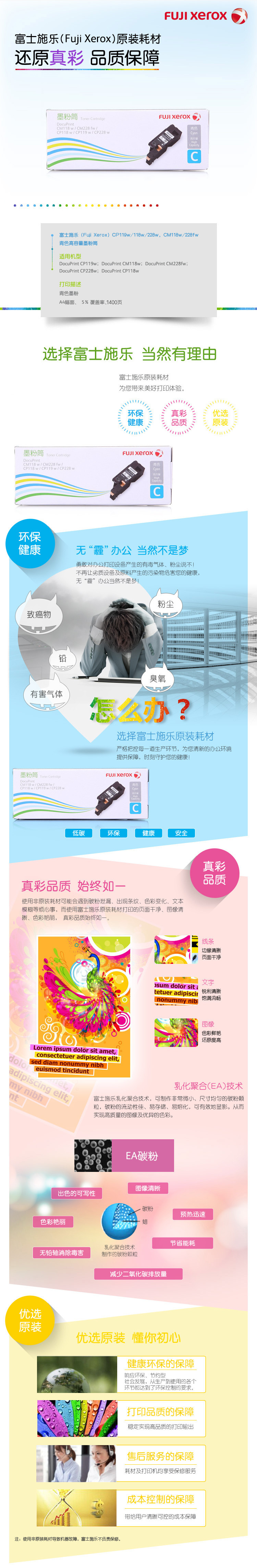富士施乐墨盒CT202258青色高容量适用于CP118/119/228系列 自营