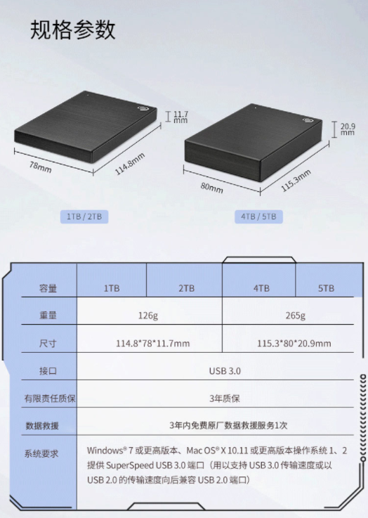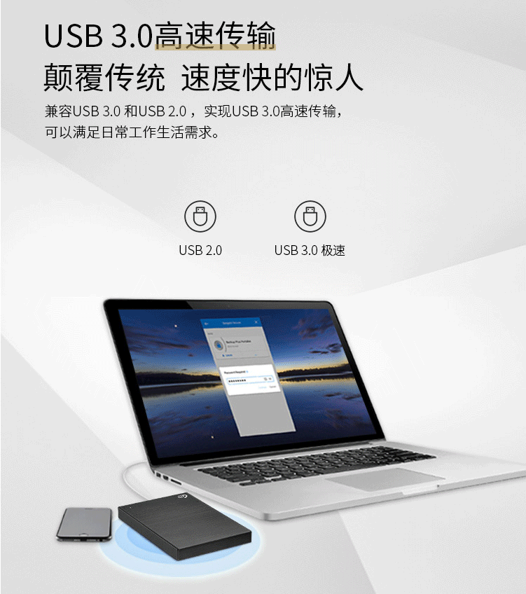 希捷(Seagate)移动硬盘2TBUSB3.0铭新睿品2.5英寸黑色金属外壳 自营
